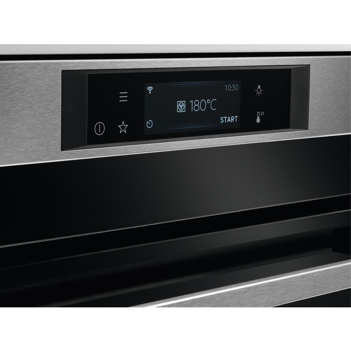 • Elektronika funkciói: 255 variety of pre-set cooking programmes "Assist" (weight/food sensor/Steam/SousVide), 3 Favorites, 30 nyelv, hangjelzés, applikáció vezérlés, auto kikapcsolás (csak sütő), állítható jelzőhang, Check Result (Finish Assist by remaining 10% duration), gyerekzár, tisztítás figyelmeztető, óra stílusa beállítható, okos panel, programozott sütés, programozott sütés, gőzmentesítés, demo mód, vízkőtelenítés, állítható kijlező fényerő, Display Full colour TFT touch 95x35mm, aszaló funkció, elektronikus hőmérséklet szabályozó, választható gyors felfűtés, húshőmérő, húshőmérő auto kikapcsolással, húshőmérő hőmérséklet kijelzéssel, húshőmérő hőmérséklet kijelzéssel, melegentartás (65 fokig), billentyűhang, nyelvválasztás, főkapcsoló, 3 napos memória, percszámláló, sütővilágítás (ki-bekapcsolható), valós hőmérséklet kijelzés, maradékhő kijelzés (°C), maradékhő felhasználás, kelesztés, szervizkód, gőz tisztítás - 2 ciklus, kikapcsolható óra (napi idő), hőmérséklet ajánlás, óra (napi idő), vízkeménység