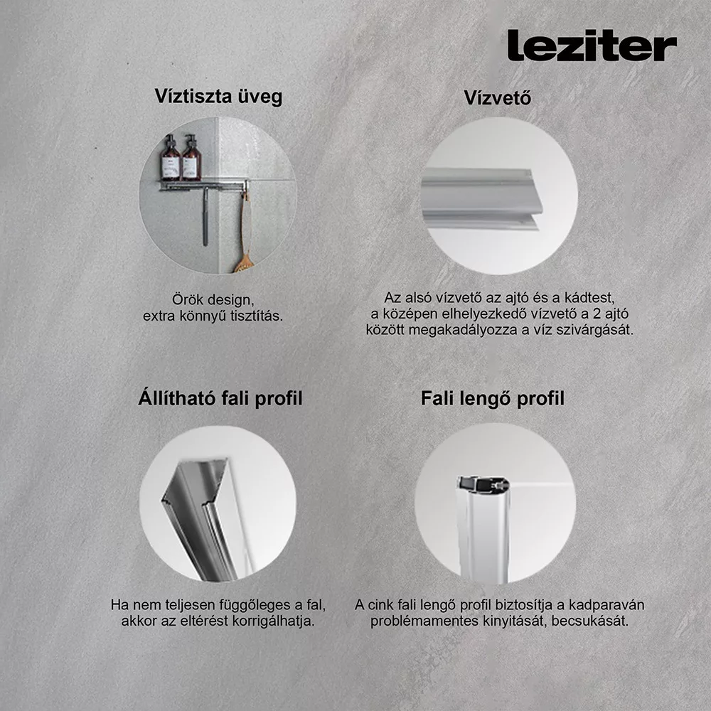 *Alsó vízvető: Az alsó vízvető megakadályozza a víz szivárgását tusolás közben.