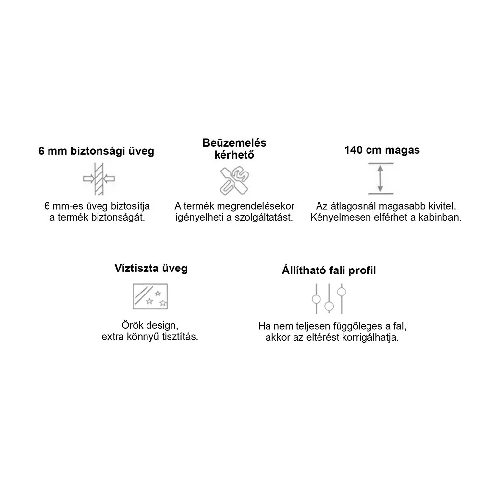 A terméket akár szakszervizes beépítéssel is megtudja rendelni, így az összeszerelésen sincs oka aggódni! 6 mm-es edzett biztonsági üveggel van ellátva. A funkcionalitás mellett természetesen a kádparaván megjelenésére is nagy figyelmet fordítottak. Üvegfelületének és letisztult, modern vonalainak köszönhetően elegáns megjelenést teremt minden fürdőszábanak. A kádparavánt szögletes kialakításúra tervezték a design és a modern megjelenés érdekében.