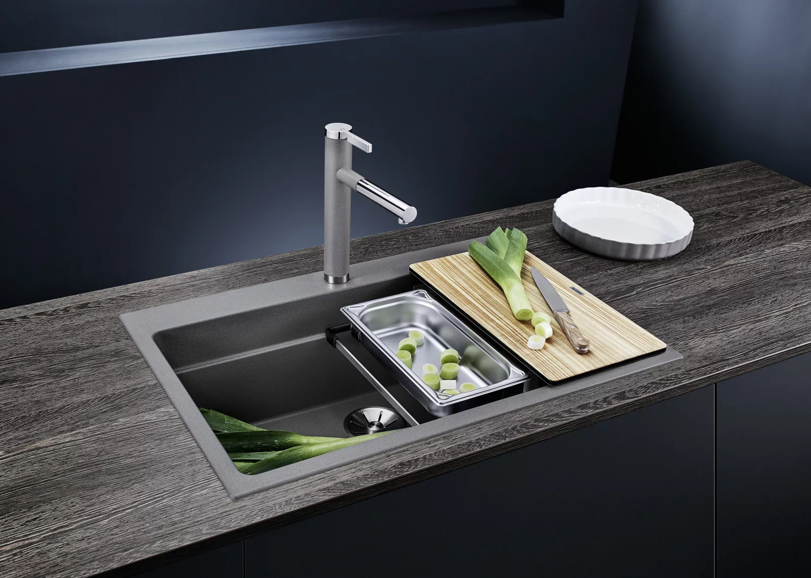 • Felülről történő beszerelés, elegáns, alacsony peremmel és egybefüggő csaptelepsávval.
