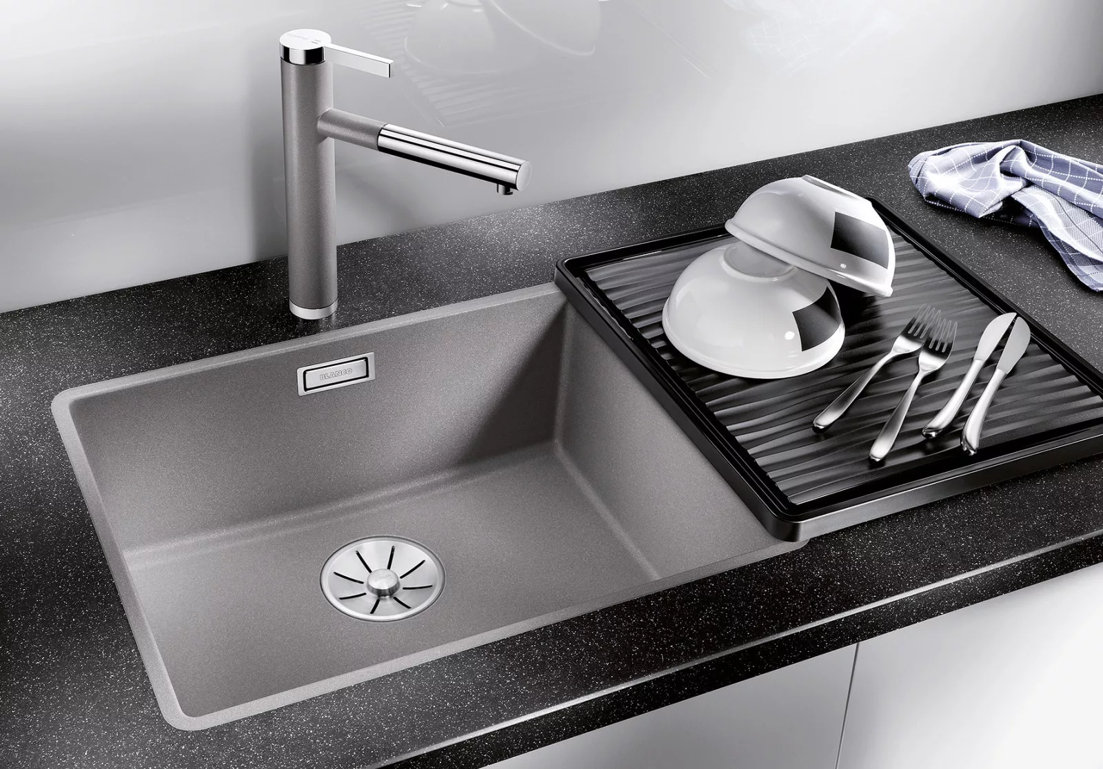 • Gazdag felszereltség C-overflow® túlfolyóval és InFino® szűrőkosárral – elegáns illeszkedés és különösen könnyű tisztíthatóság.