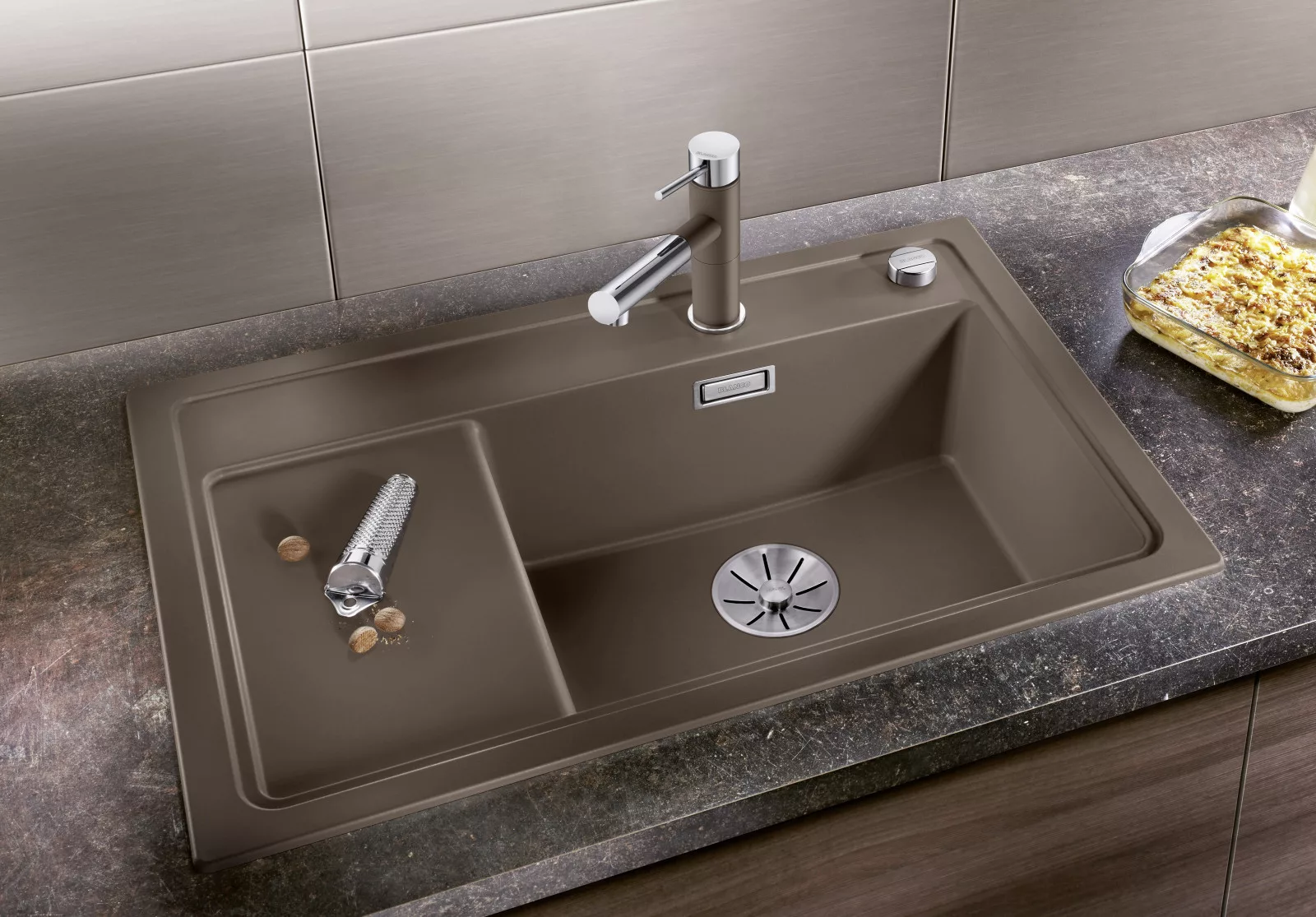 • Gazdag felszereltség lefolyó-távműködtetővel, C-overflow® túlfolyóval és BLANCO InFino® szűrőkosárral – elegáns illeszkedés és különösen könnyű tisztíthatóság.