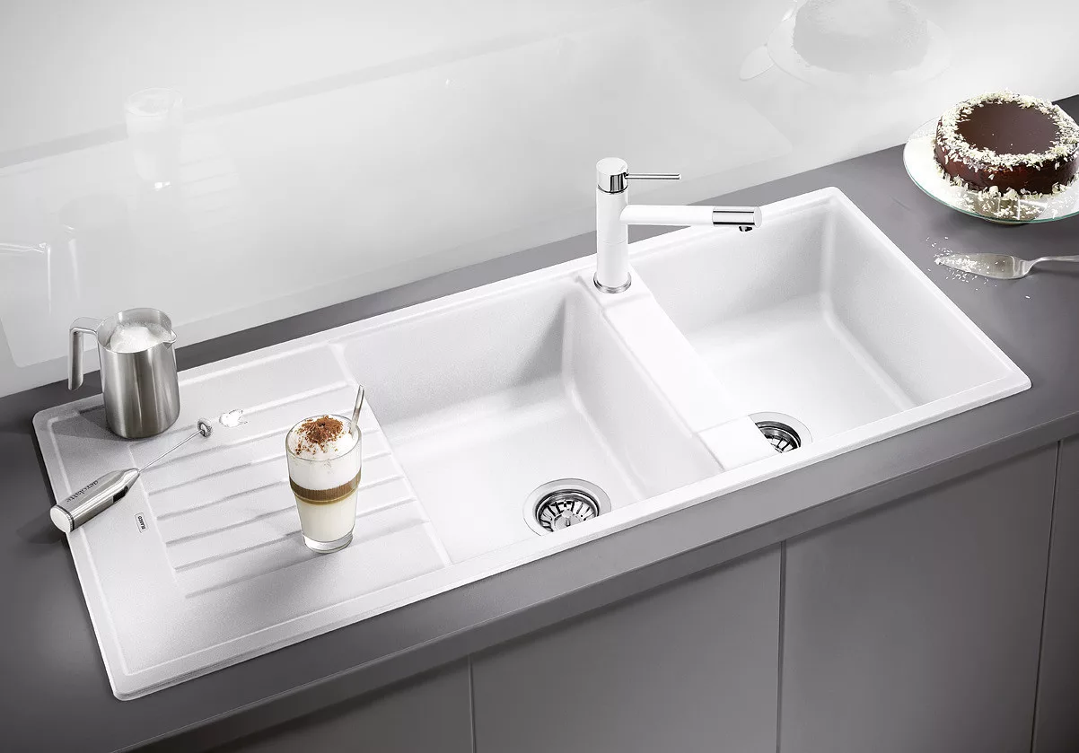 • A nagy, kétmedencés mosogató és a csepegtetőfelület sok kényelmes helyet biztosít.