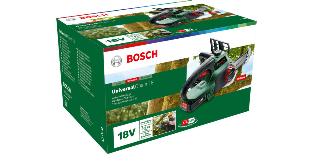 A Bosch UniversalChain 18 Akkus Láncfűrész egy könnyű és kényelmesen használható eszköz, amely ideális a kisebb és közepes méretű fák, ágak és tűzifa vágásához. Ez a láncfűrész a Bosch megbízható minőségét és innovatív technológiáját kínálja, hogy a kertészkedés és a faápolás egyszerű és hatékony legyen.