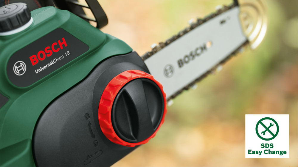 • A tökéletesített Bosch SDS rendszerrel szerszám nélkül állítható a lánc feszessége és cserélhető a lánc