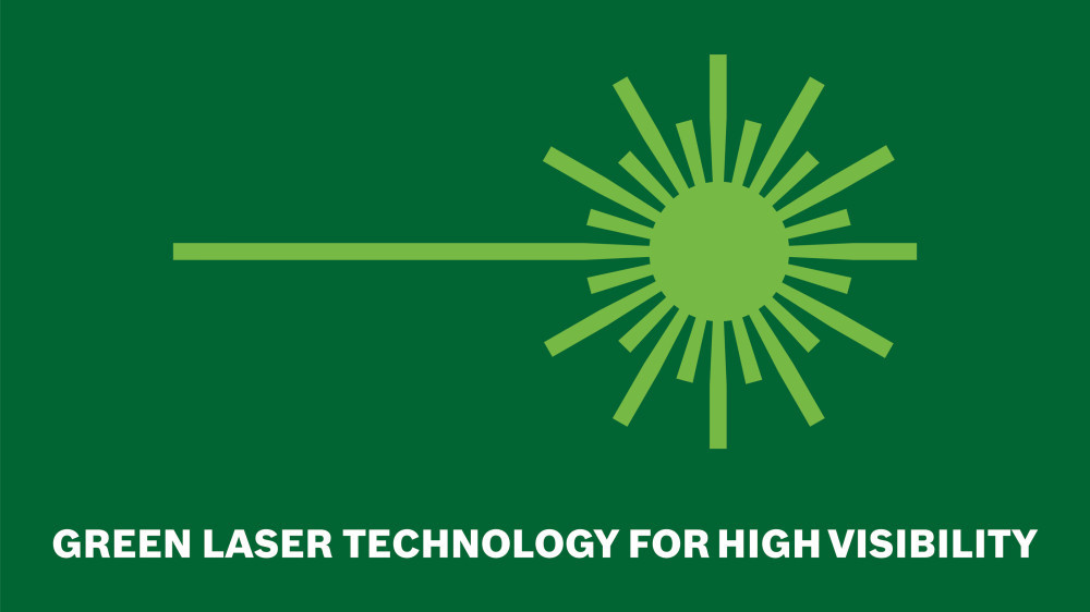 • Zöld lézertechnológia a piros lézervonalakhoz képest akár 4 x jobb láthatóságért világos fényviszonyok között is