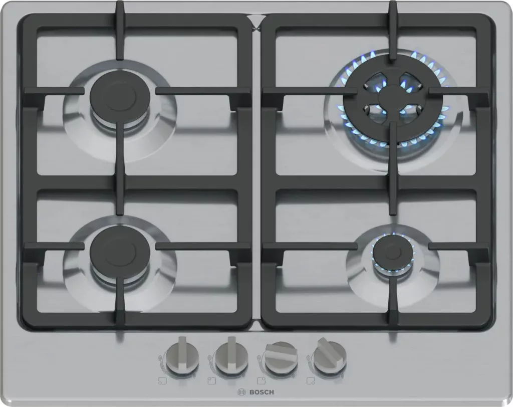 Bosch PGH6B5K90 Serie4 Inox Gázfőzőlap Öntöttvas Edénytartóval