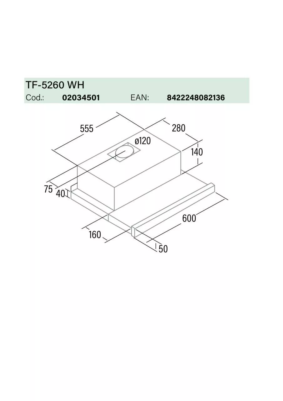 A CATA TF-52 sorozatot arra tervezték, hogy beszerelhető legyen egy konyhabútor felső szekrénybe. Beépítése gyors és egyszerű, a tetején és az oldalán is található rögzítési pontoknak köszönhetően. A távtartó a páraelszívó és a fal között távolság áthidalására szolgál. A páraelszívó dobozában megtalál minden tartozékot a készülék felszereléséhez. Előlapja levehető, így akár konyhabútor anyagával azonos előlap is felszerelhető. Az elszívott levegő a szabadba egy csővezetéken keresztül távozik, (kivezetéses üzemmód) amit egy 125 mm átmérőjű nyíláshoz kell csatlakoztatni egy csőcsonk segítségével. Tilos égéstermékek céljára használt csatornákba, kéményekbe bevezetni!