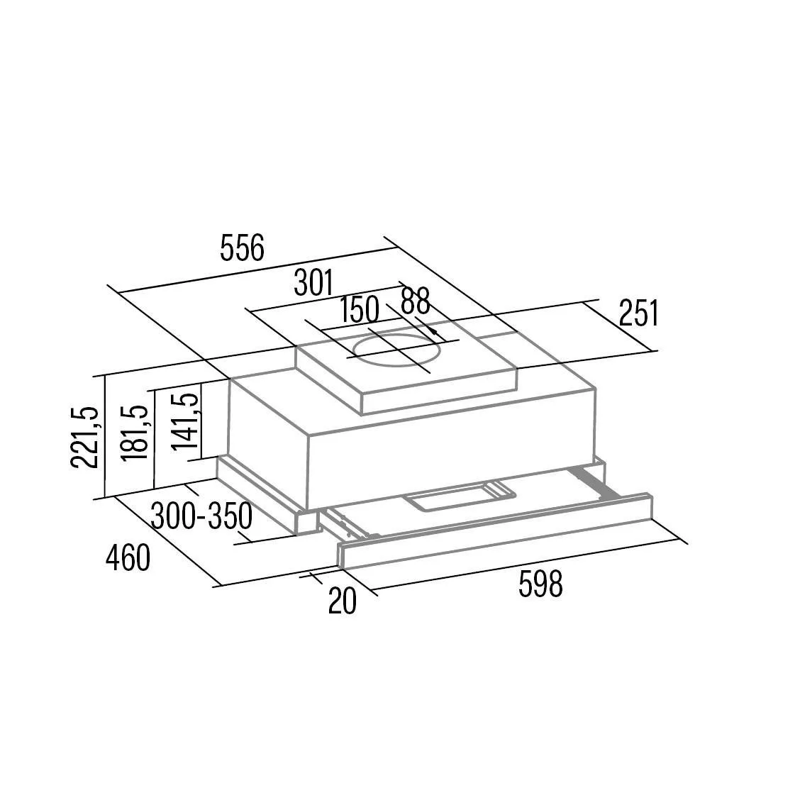 Többféle telepítési lehetőség az elszívón elhelyezett rögzítési pontokkal és állítható mélységű előlappal (280-330 mm).