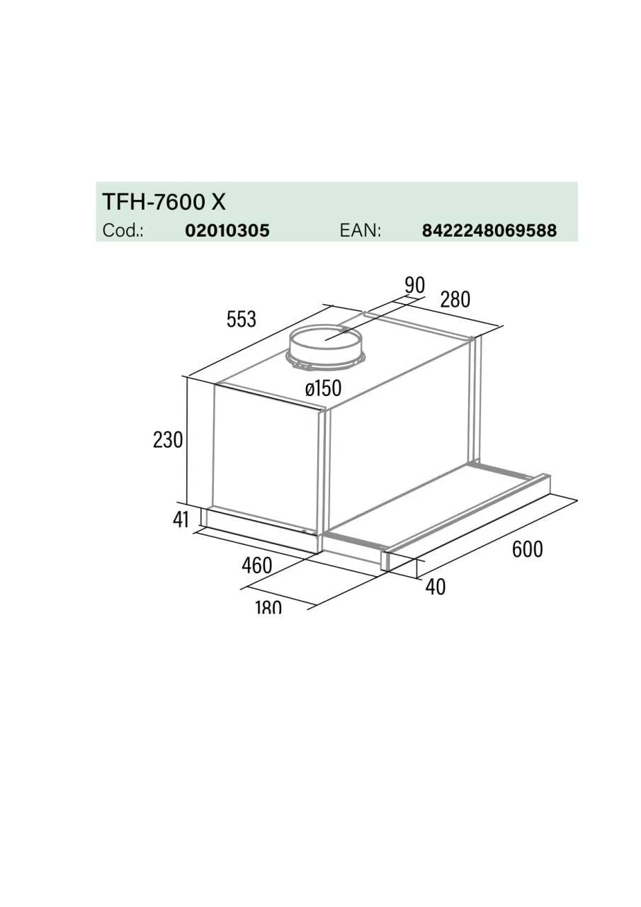 Cata - Páraelszívó TFH-7600 X Inox - Letisztult forma, kiváló teljesítmény