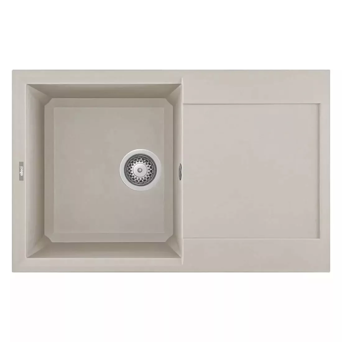 Az ELLECI Easy 300 Granitek egymedencés mosogatótálca csepptálcával – G39 Bianco Soft színben – a konyha központi elemeként a praktikumot és az esztétikumot ötvözi. A csaptelep oldalra helyezett kialakítása lehetővé teszi, hogy a tartozékok a mosogató teljes hosszában szabadon mozogjanak, így egy harmonikus, jól szervezett munkaterület alakul ki, ahol minden mozdulat gördülékeny.