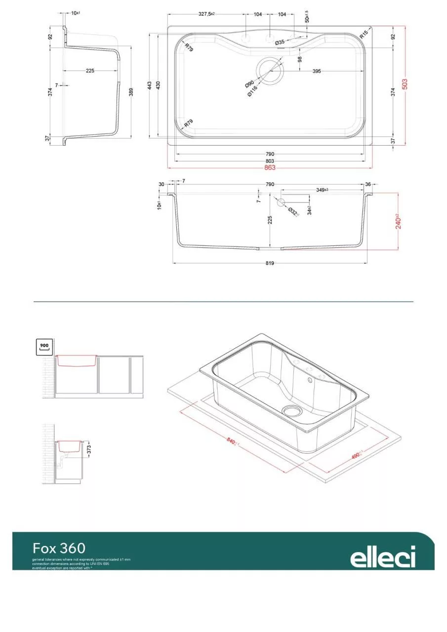 ELLECI - Mosogatótálca Fox 360 G52 Bianco Pietra - Kifutó termék!