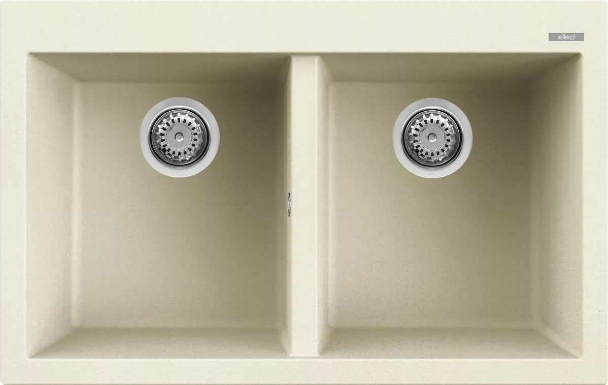 ELLECI Quadra 350 Granitek kétmedencés mosogatótálca (G62 Bianco Antico) – Olasz elegancia, időtálló minőség a konyha középpontjában