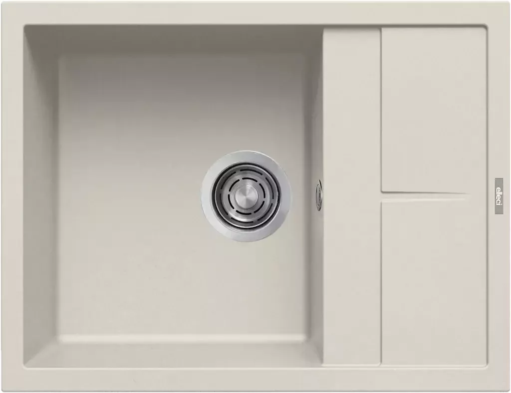 Az ELLECI Unico 125 Granitek (G39 Bianco soft) egymedencés, csepptálcával ellátott mosogatótálca könnyen a konyha egyik legfontosabb munkaállomásává válhat. A csaptelep oldalra helyezett kialakítása lehetővé teszi, hogy a tartozékok a mosogató teljes hosszában szabadon mozogjanak, így a munkaterület egységes és zavartalan marad. Ez a megoldás nemcsak esztétikus, hanem rendkívül praktikus is, hiszen a mosogatás, öblítés és előkészítés folyamata gördülékenyebbé válik.