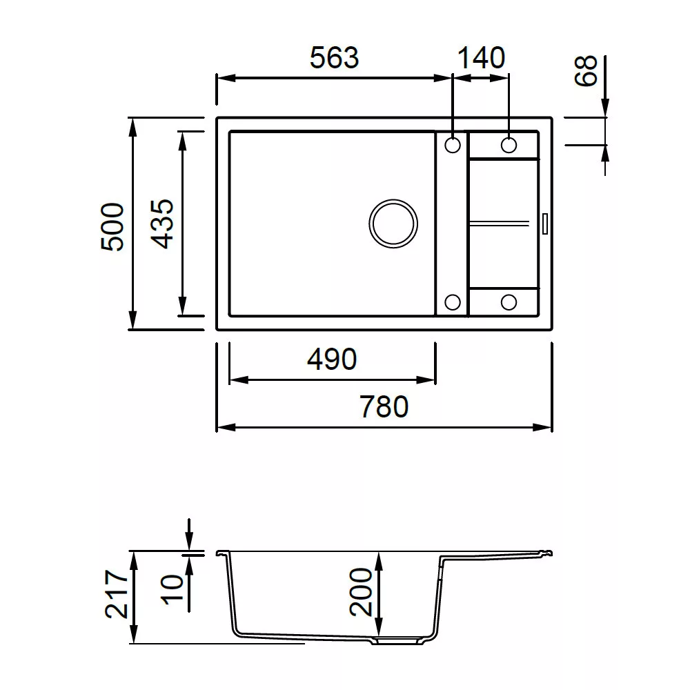 A 780x500 mm-es méret és a 200 mm-es medencemélység bőséges teret biztosít nagyobb edények és tepsik tisztításához is. A csepptálca kiegészíti a fő medencét, lehetővé téve a frissen mosott edények gyors szárítását vagy a zöldségek és gyümölcsök előkészítését. A 760x480 mm-es kivágási méret és a 600 mm-es szekrényméret biztosítja, hogy a beépítés zökkenőmentes legyen, akár új konyhabútorba, akár felújítás során. A megfordítható kialakításnak köszönhetően a csepptálca elhelyezése a konyha adottságaihoz igazítható, így mindig a legkényelmesebb munkafolyamatot biztosítja.