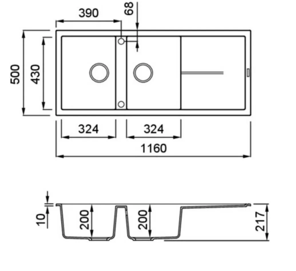 A két, egyenlő méretű 200 mm mély medence bőséges helyet kínál akár nagyméretű edények és lábasok tisztításához is. A tálcához integrált csepptálca segít a víz elvezetésében és a munkafelület tisztán tartásában, így a mosogatás mindig rendezett környezetben történhet. A medencék megfordíthatók, így Ön döntheti el, melyik oldalra kerüljön a csepegtető – ez a rugalmasság bármilyen konyhai elrendezéshez illeszthető.