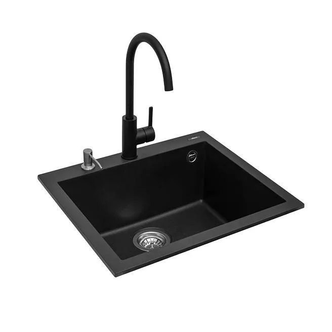 1 medencés mosogatótálca, munkalapra szerelhető, anyaga: granitek, színe: G40 nero, mosogatótálca mérete: 570x500 mm, medence mélysége: 200 mm, tartozékok: helytakarékos szifon, szűrőkosár, rögzítő fülek, elleci túlfolyó, 10 év garancia