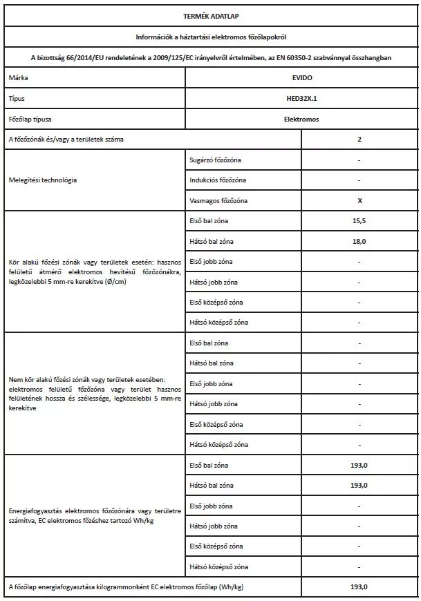 EVIDO DOMINO-E 32X FŐZŐLAPOK elektromos