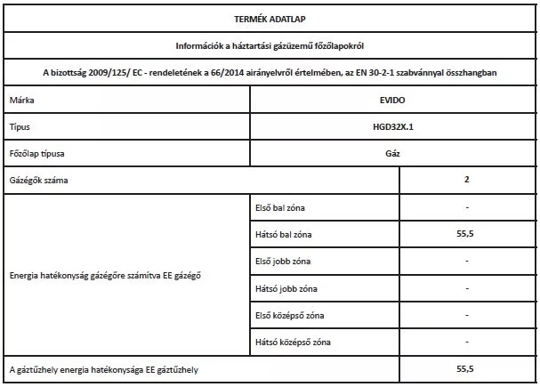 EVIDO DOMINO-G 32X FŐZŐLAPOK gáz