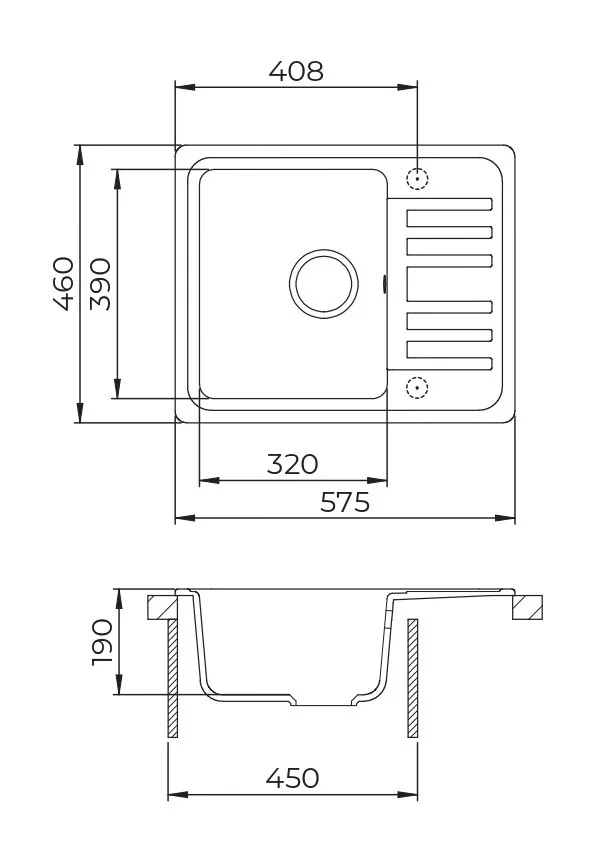 • Beépítési méret: 575 x 460 / 190 mm