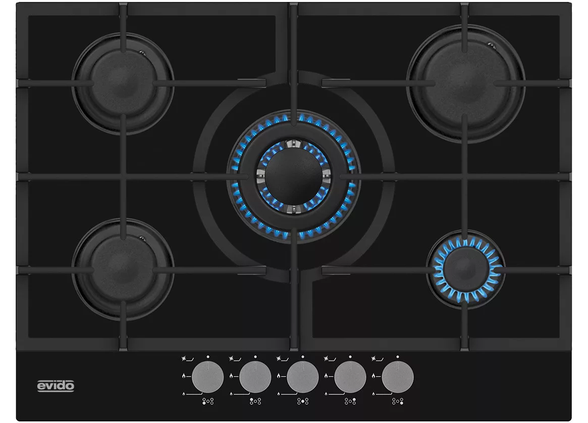 EVIDO MURANO 70B üveggázfőzőlap,70cm,WOK,fekete