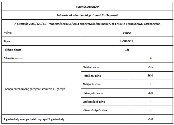 EVIDO RUSTIC-H 60C GÁZ FŐZŐLAP