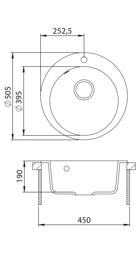 EVIDO Tondo kerek gránit mosogató, 505 mm, platina