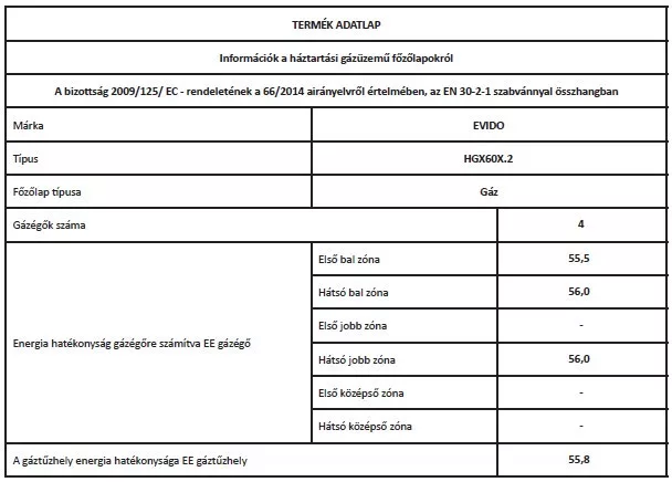 EVIDO VALEO 60SX GÁZ FŐZŐLAP