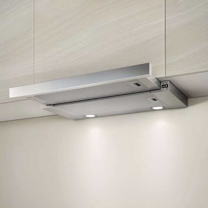 A felső szekrénybe építhető páraelszívó berendezés elektronikus vezérléssel rendelkezik, amely egyszerű és megbízható működtetést biztosít. A kezelőfelületen található gombok segítségével könnyedén válthatunk a 3 + 1 (turbó) elszívási fokozat között, a világítás pedig külön gombbal kapcsolható be és ki. Az áttekinthető gombelrendezés gyors és praktikus használatot tesz lehetővé a mindennapokban. A motor és a világítás csak akkor működik ha az előlapot kihúzza. A főzés befejezése után javasolt az elszívót kikapcsolni.