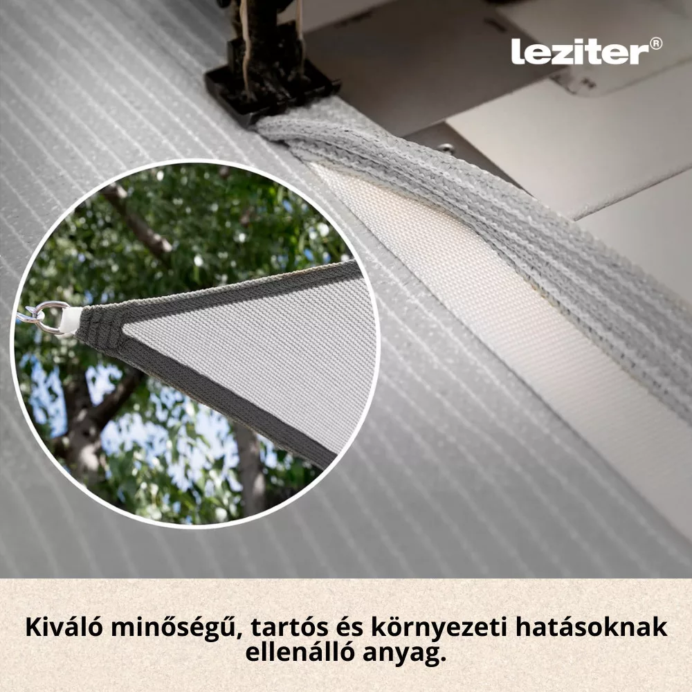 Az erős, 180 g/m² sűrűségű HDPE szövet hosszú élettartamot garantál, míg a rozsdamentes acél rögzítőgyűrűk stabil és biztonságos rögzítést tesznek lehetővé.
