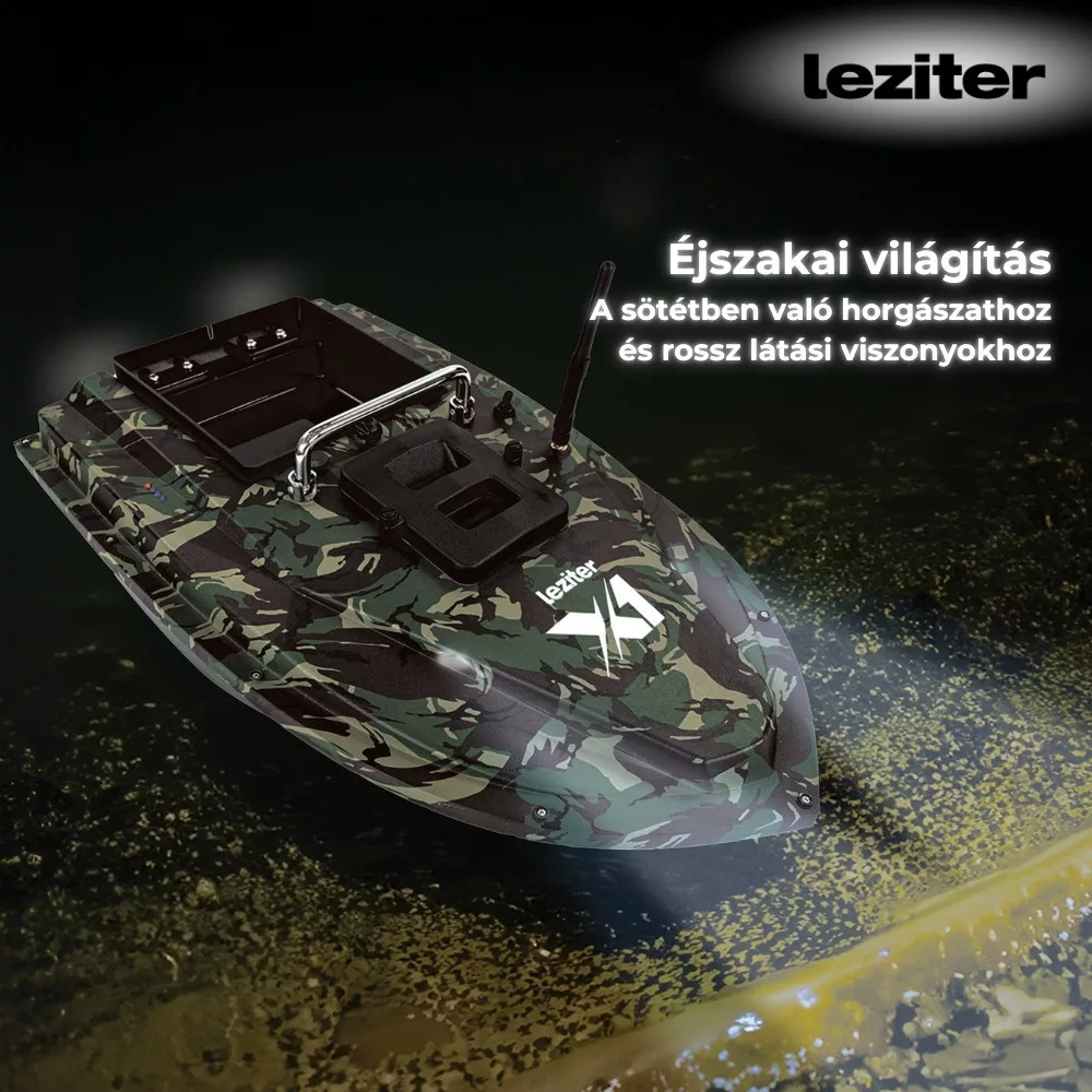 Leziter X1 hátrakidobós zöld terepmintás etetőhajó legfőbb tulajdonságai