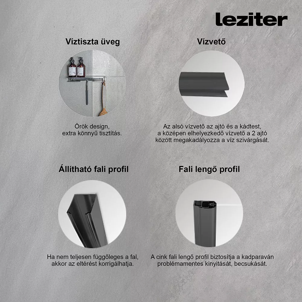 *Alsó vízvető: Az alsó vízvető megakadályozza a víz szivárgását tusolás közben.