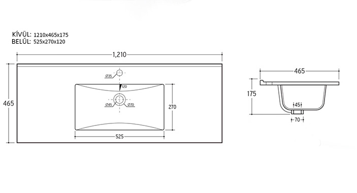 Flat Design 1 medencés mosdó 18x120x46 cm