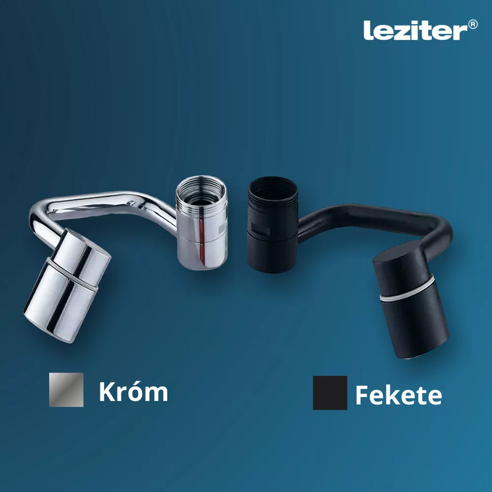 A Leziter innovatív csaptelep-kiegészítője 360°-ban forgatható, sőt összesen 360°-os mozgástartománnyal rendelkezik, így pontosan oda irányíthatod a vízsugarat, ahová csak szeretnéd – pillanatok alatt. Akár mosdókagylón, akár konyhai csapon használod, a rugalmasság és a kényelem garantált.