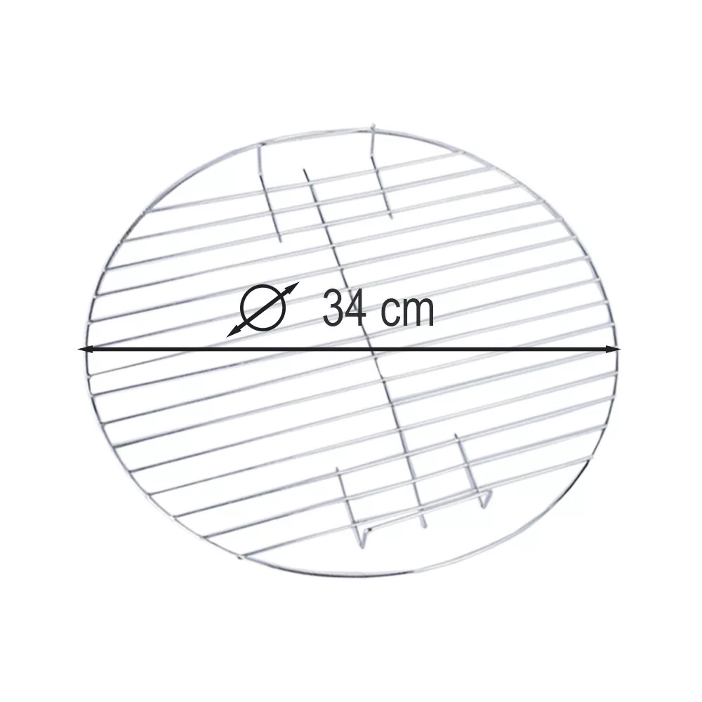 Ez a 34 cm átmérőjű kerek grillrács alkalmas faszenes grillekhez, biztosítva az egyenletes hőelosztást és a tökéletes sütési eredményt. A krómozott acél felület ellenáll a hőnek és könnyen tisztítható, így hosszú távon is megbízható társ a grillezésben.