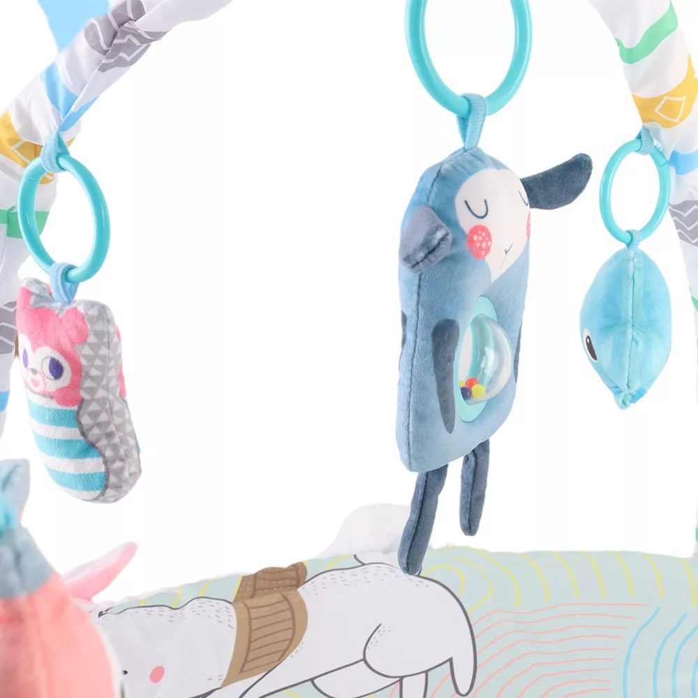 Játszószőnyeg játékhíddal és plüss figurákkal – interaktív babafejlesztő játék
