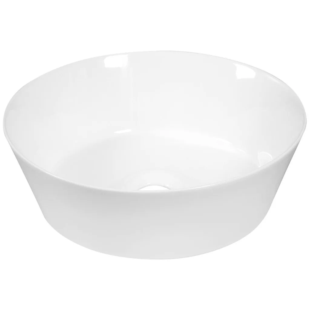 Főbb adatok • 36 × 36 × 12 cm • szaniter kerámia • hófehér • kerek forma • csapfurat nélkül • túlfolyó nélkül • pultra szerelhető • modern-minimalista stílus