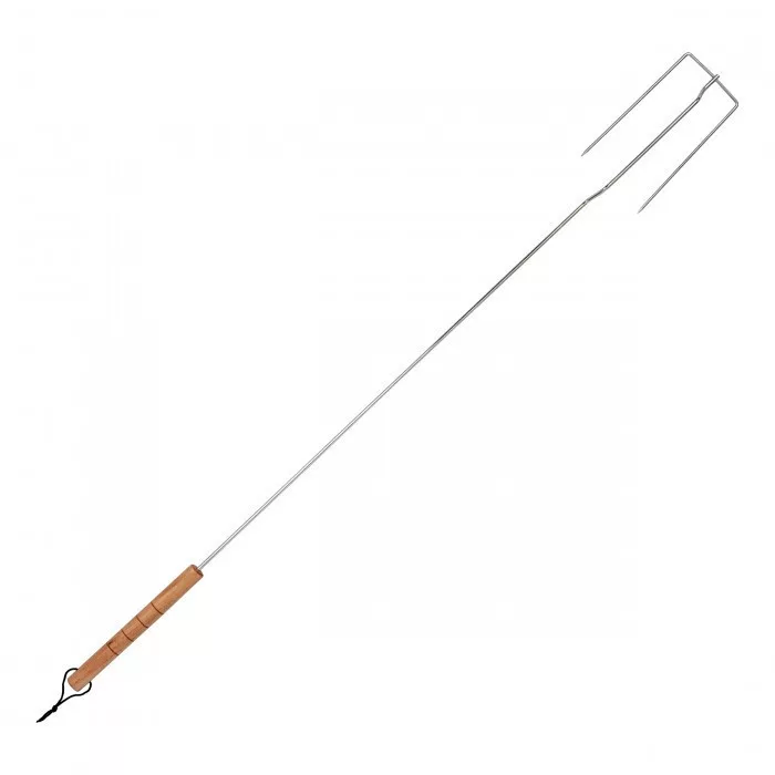 A hosszú, 104 cm-es nyárs lehetővé teszi, hogy egyszerre több kolbászt is sütsünk a grillen vagy a tábortűzön. A fa nyélnek köszönhetően könnyen használható. Krómozott acélból készült.