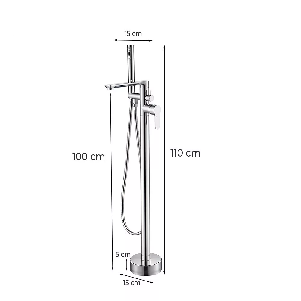 A csaptest 100 cm-es magassága ergonomikus kialakítást tesz lehetővé, míg a teljes 110 cm-es magasság optimális hozzáférést biztosít. A 15 cm hosszú kifolyócső tökéletes pozícióban engedi a vizet a kádba, a kézi zuhany pedig kényelmes fogással biztosítja a maximális kontrollt.
