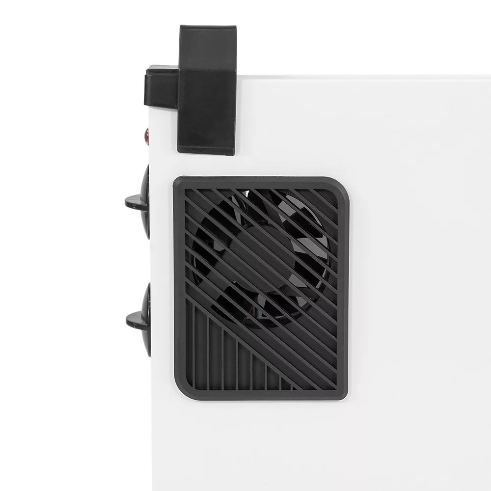 A fehér színű, fekete részletekkel ellátott fűtőtest semleges megjelenést kölcsönöz a terméknek. Az egyszerű kezelőgombok, a jól látható szellőzőrács és a letisztult forma nemcsak esztétikus, hanem praktikus is.