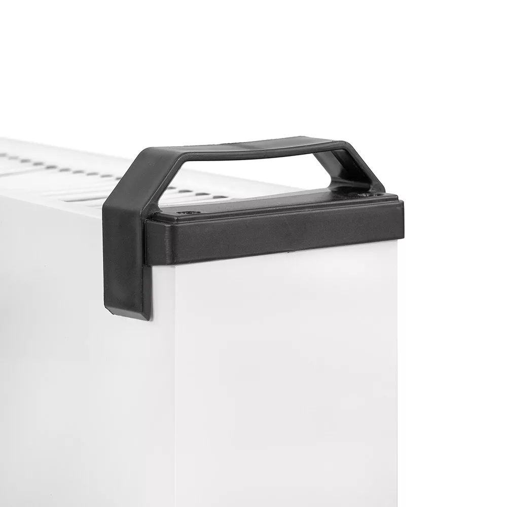 A készülék szabadon álló kivitelben használható, és falra is szerelhető. A tetején található praktikus hordozófül segítségével bármelyik szobába egyszerűen áthelyezhető, akár a nappaliba, hálóba vagy az irodádba is. Kis súlyának és kompakt méretének köszönhetően ideális választás időszakos vagy kiegészítő fűtésre.