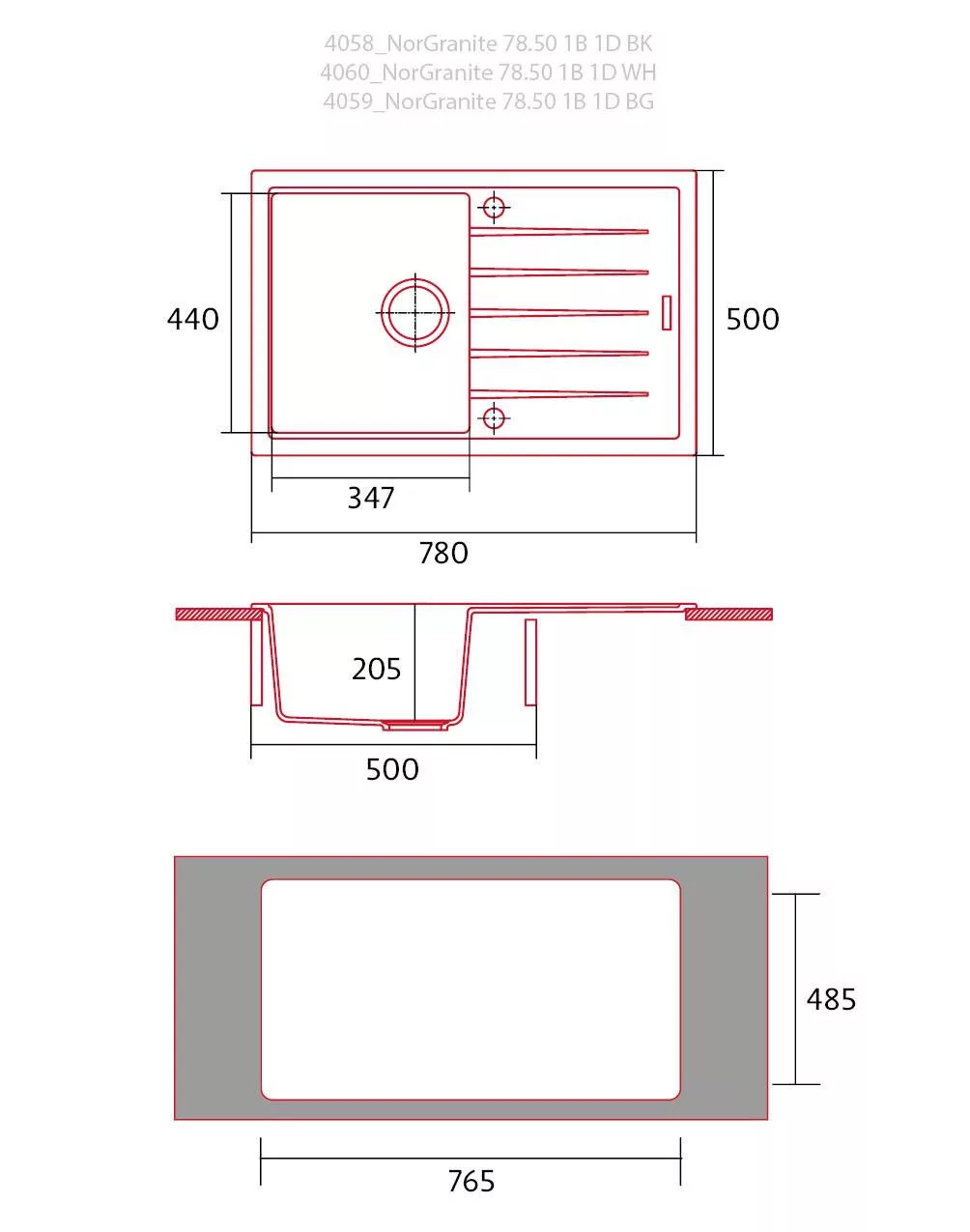 NODOR - Mosogatótálca NorGranite 78.50 1B 1D WH fehér