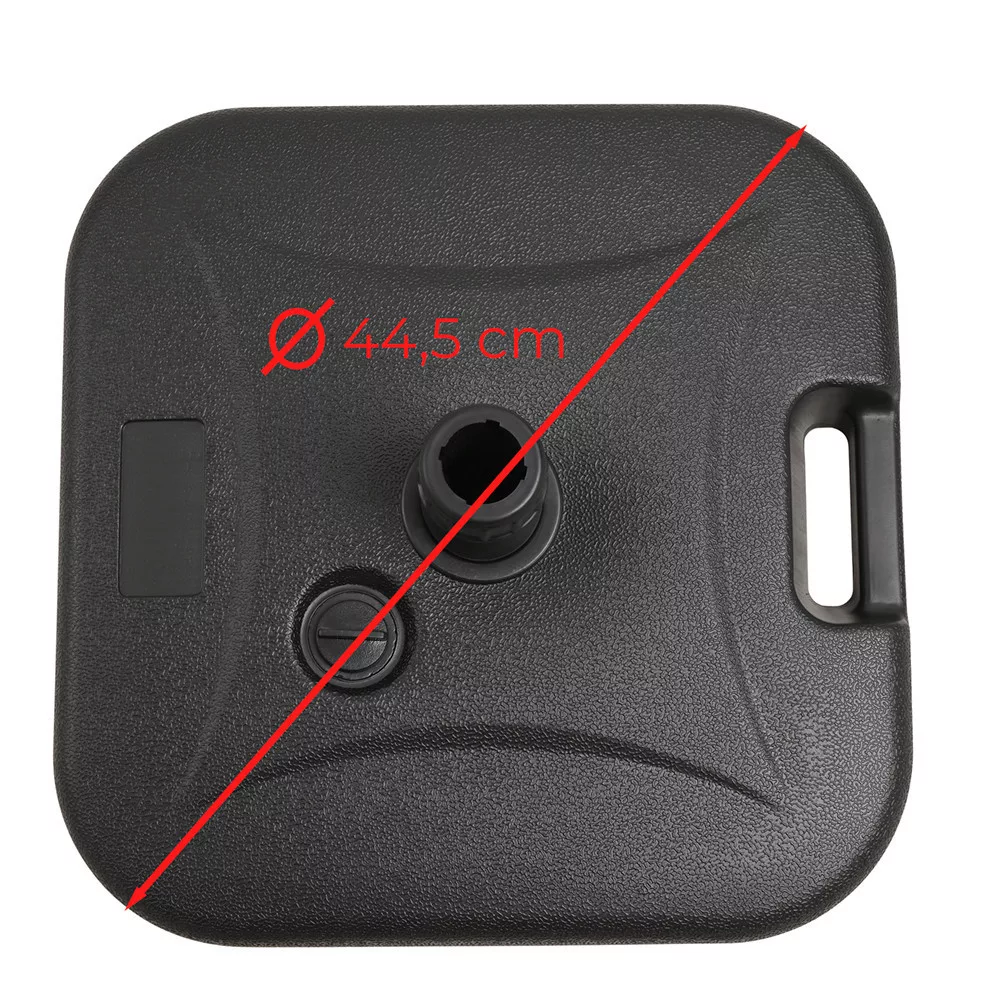 A 20 literes napernyőtalp kiváló választás, ha masszív és megbízható rögzítést keresel a napernyőd számára. Kiváló minőségű HDPE anyagból készült, amely ellenáll az időjárás viszontagságainak, így hosszú távon is megőrzi stabilitását. A talp vízzel vagy homokkal feltöltve akár 20 kg-os súlyt biztosít, megakadályozva, hogy a napernyőd elmozduljon vagy felboruljon erősebb szél esetén. A kompakt méret (44,5 cm átmérő és 14 cm magasság) lehetővé teszi a könnyű mozgatást és tárolást.