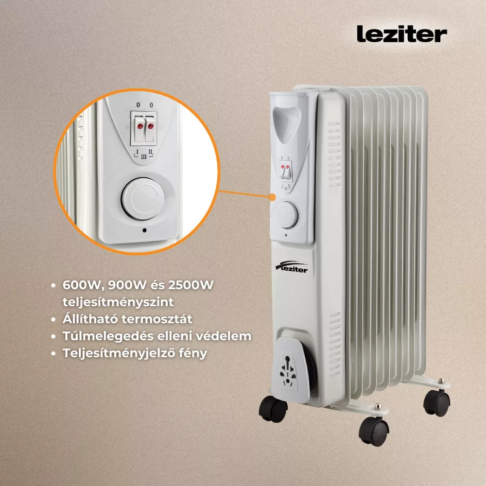 A három választható teljesítményszint lehetővé teszi, hogy mindig az aktuális igényeknek megfelelő hőmérsékleten működtesd a radiátort, így energiatakarékos módon biztosítja a komfortos hőérzetet.