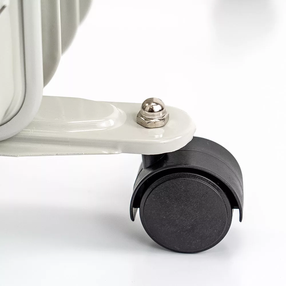 A radiátor beépített szállítófogantyúkkal és sima kerekekkel van felszerelve, így könnyedén áthelyezhető a kívánt helyiségbe. A teljesítményjelző fény mindig mutatja, hogy a készülék működésben van-e, így folyamatosan ellenőrzés alatt tartható.