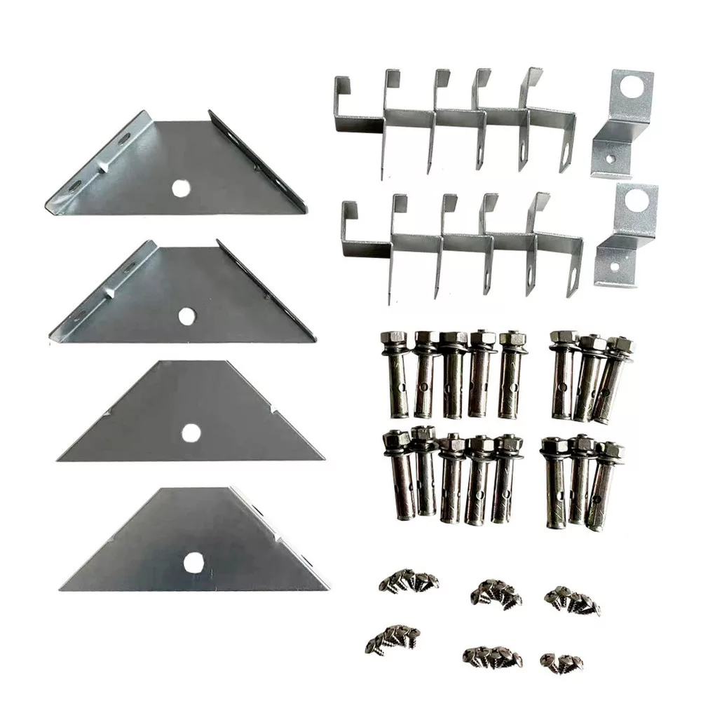 A rögzítő szett kerti szerszámtároló házakhoz alkalmas.