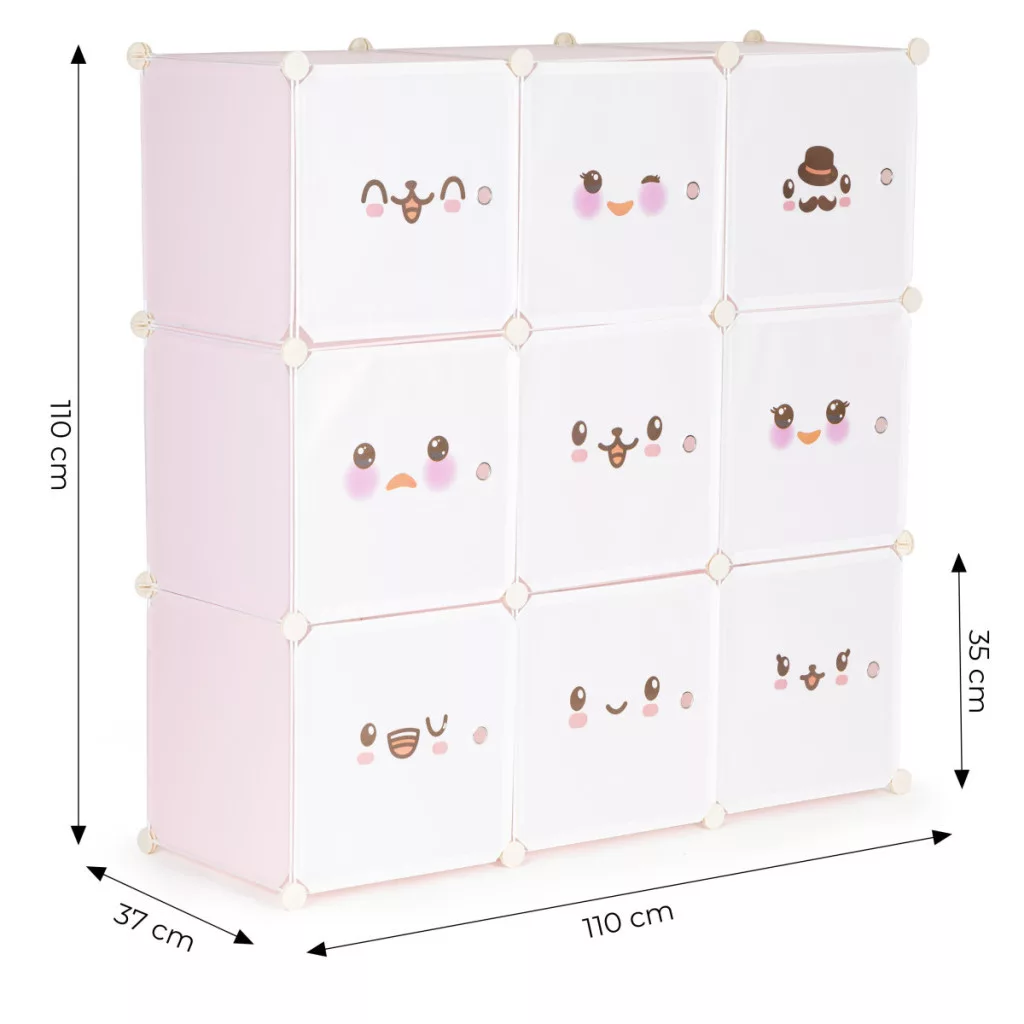 Az 9 polc mindegyike akár 3 kg terhelést is elbír, ami azt jelenti, hogy könyvek, plüss barátok vagy építőkockák is könnyedén elférnek rajtuk. A tárolt tárgyakhoz való könnyű hozzáférés lehetővé teszia gyermekek a rendrakásról való önálló gondoskodást.