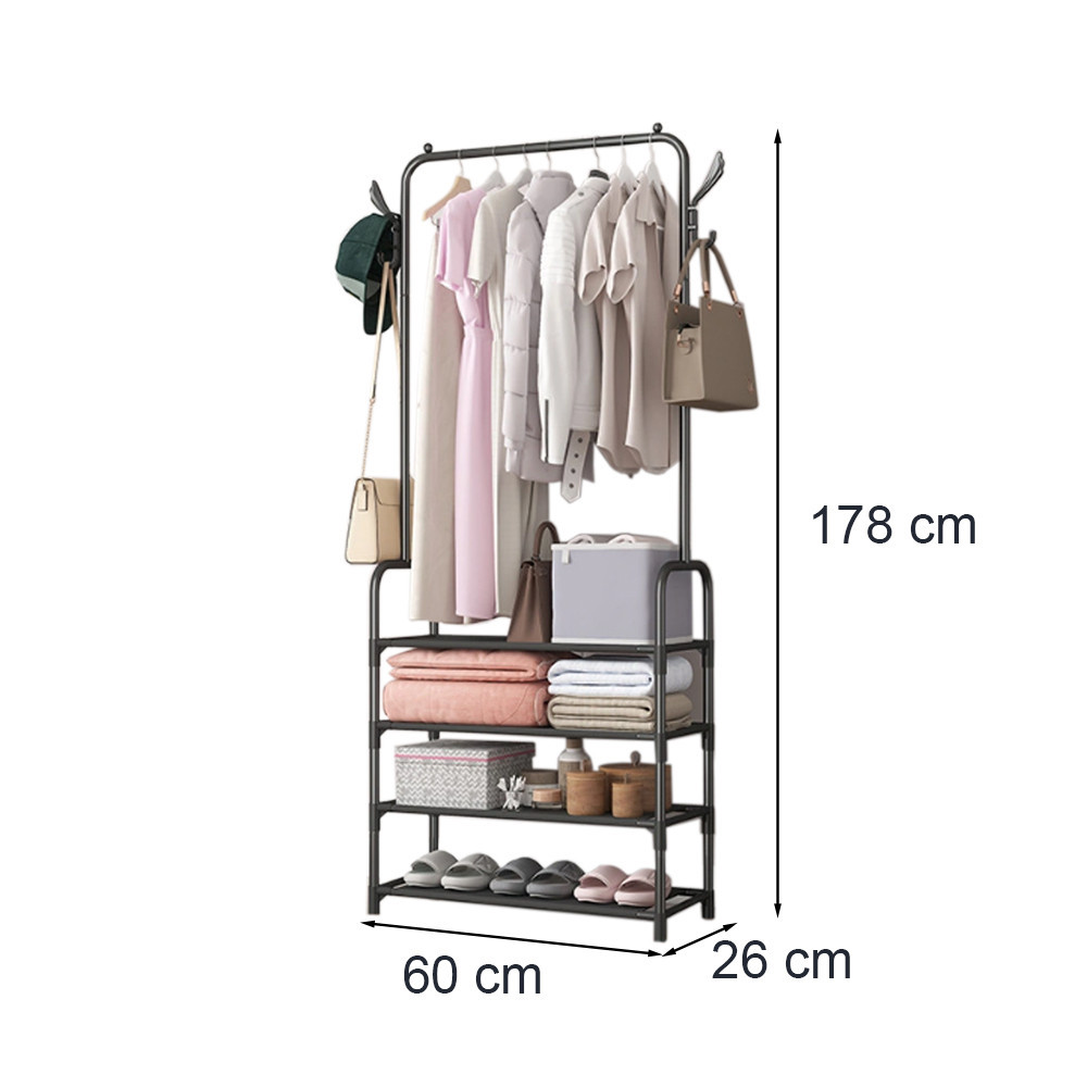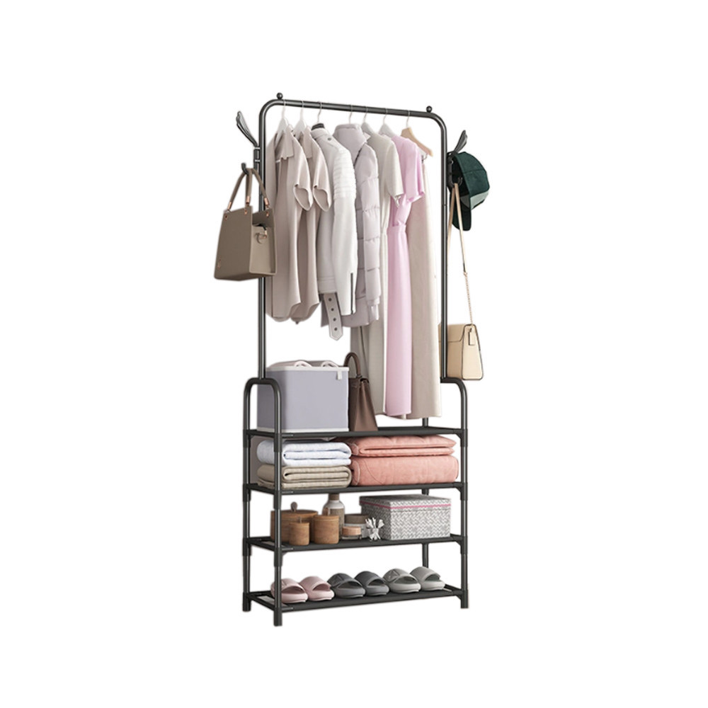 • Rend és szervezettség: Az állvány több szintjének köszönhetően könnyedén rendszerezhetők a ruhák, a cipők és a kiegészítők. Minden darabnak meglesz a saját helye, így elkerülheted a rendetlenséget.