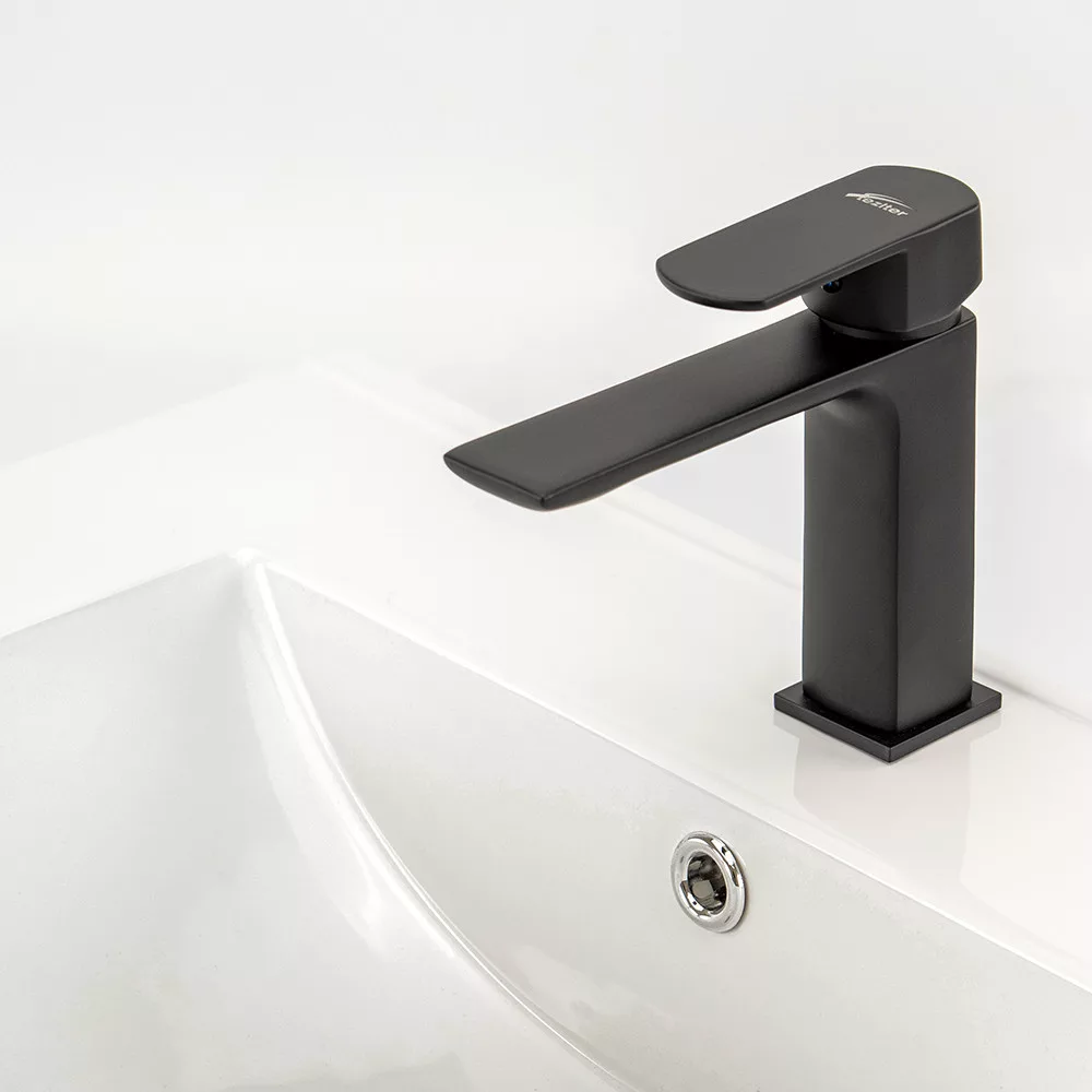1. Matt fekete felület: A Sofia mosdó csaptelep matt fekete színben tündököl, amely azonnal eleganciát és exkluzivitást sugall. Ez a színválasztás tökéletesen illeszkedik a modern fürdőszobák stílusához.