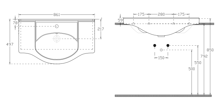 A V85 szárnyas kerámia mosdó számos pozitív tulajdonsággal rendelkezik. Ezek közé tartozik a tökéletesen letisztult körvonalak és az egyenes rakodófelületek. Csaplyukkal és túlfolyókkal rendelkezik. A mosdó 861x497 mm-es.